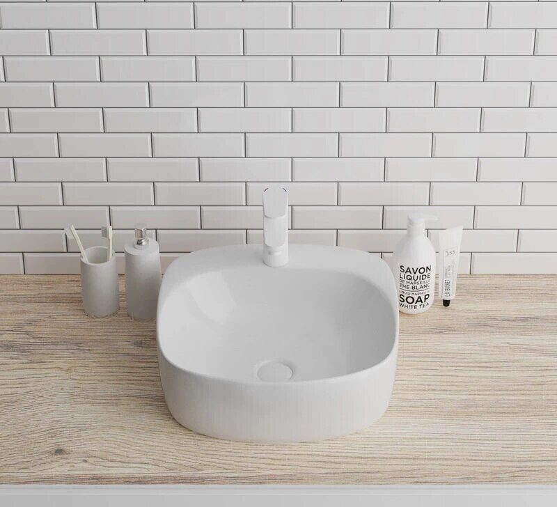 Размер умывальника: 38х38см. Размер чаши 35х35см. Глубина: 9,5см. Материал: 80% кварцевый композит и 20% полимерное связующее. Доступные цвета: , искристый серый, белый арктик.