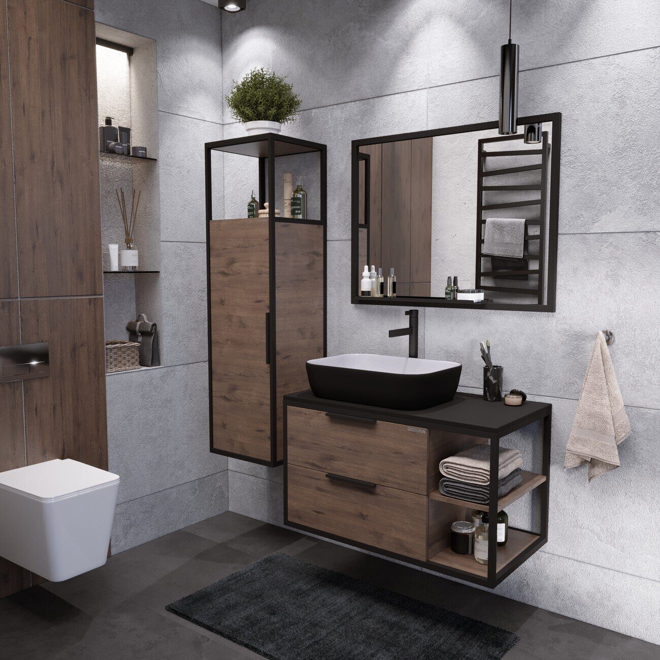 Lino 80 тумба дуб веллингтон для ванной комнаты с раковиной-столешницей Электра 80 Aquanet