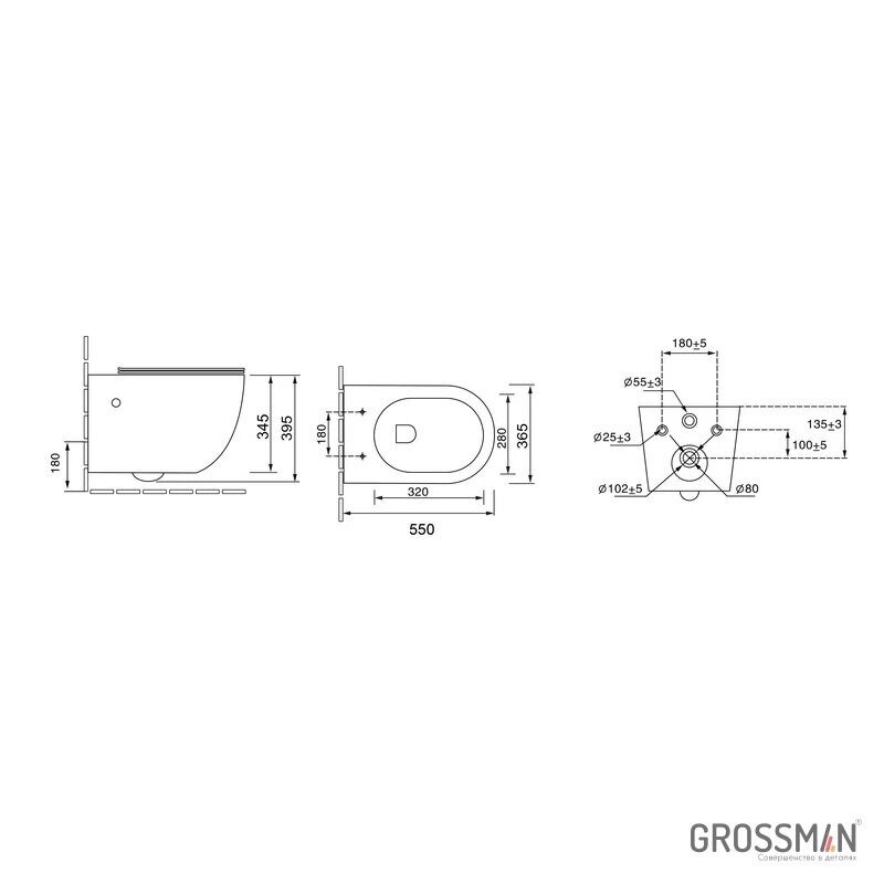 GrossmanGrossman GR-4411BBLS подвесной безободковый унитаз черный Крокодил с сидением