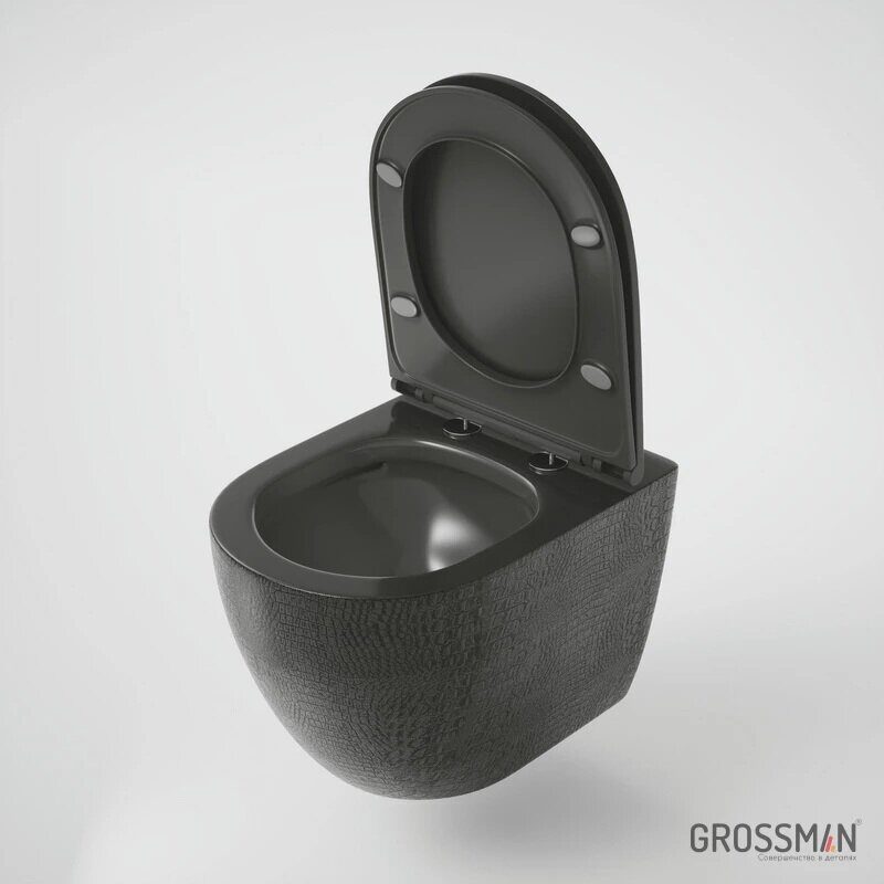 Grossman GR-4455BBLS подвесной безободковый унитаз черный глянцевый с сидением