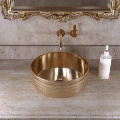 Главная Каталог магазина Сантехника Раковины/Умывальники Grossman GR-5010GG накладная раковина золотая