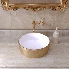 Главная Каталог магазина Сантехника Раковины/Умывальники Grossman GR-5010GW накладная раковина золото-белая