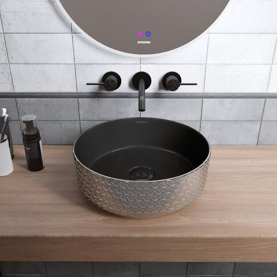Главная Каталог магазина Сантехника Раковины/Умывальники Grossman GR-5010SBR накладная раковина серебро-черная