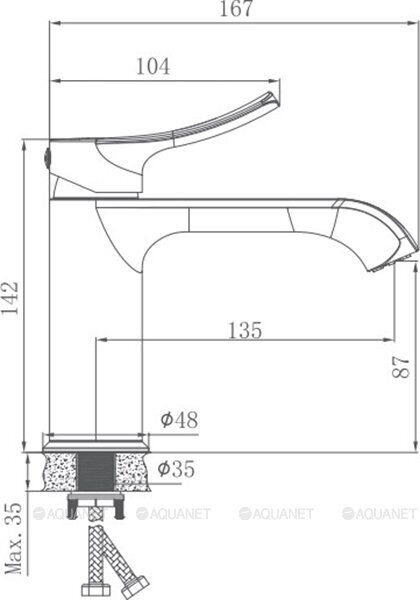 Комплект: Смеситель, подводка. Управление - рычажное.