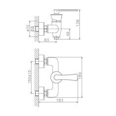Комплект: смеситель, душевой шланг, душевая лейка, держатель лейки, эксцентрики, декоративные чашки, инструкция.. Управление - Рычажное.