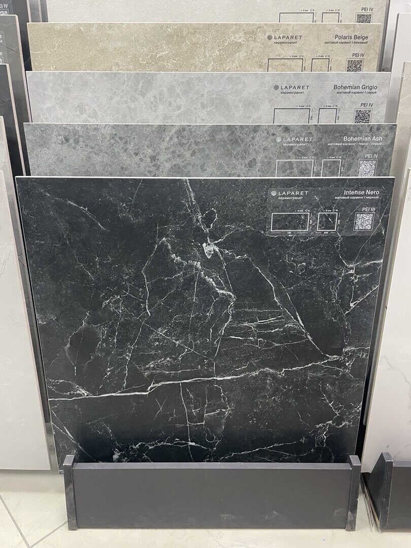 Размер: 59,5x59,5см. Цвет:   черный, под мрамор.  Матовый. Карвинг.  Ректификат. Отпускается: кратно упаковке 1,8м2 /5 шт