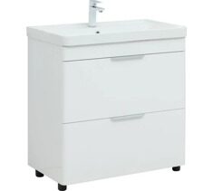 Ирис new 80 тумба напольная белый глянец 2 ящика для ванной комнаты Aquanet
