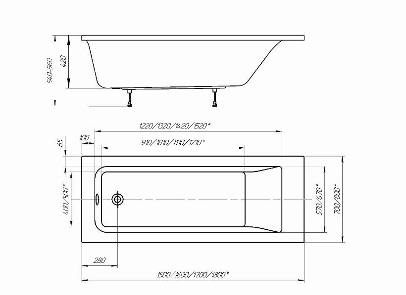 Разнообразие форм и размеров. Ассортимент Aquatek позволяет выбрать ванну как для компактных, так и просторных помещений, классических прямоугольных или ассиметричных форм.