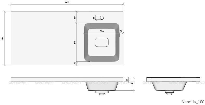 Главная Каталог магазина Сантехника Раковины/Умывальники Kamilla 100 раковина-столешница правая из литьевого мрамора для монтажа над стиральной машиной Aquanet