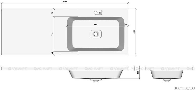 Главная Каталог магазина Сантехника Раковины/Умывальники Kamilla 130 раковина-столешница правая из литьевого мрамора для монтажа над стиральной машиной Aquanet