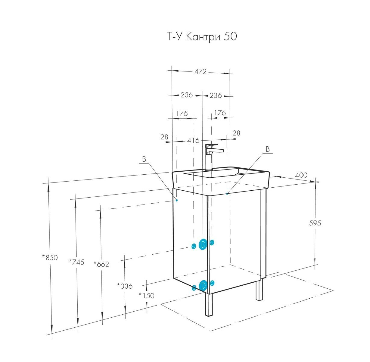 Кантри 50 см тумба белая/дуб верона для ванной комнаты с раковиной Нео 50 Aquaton