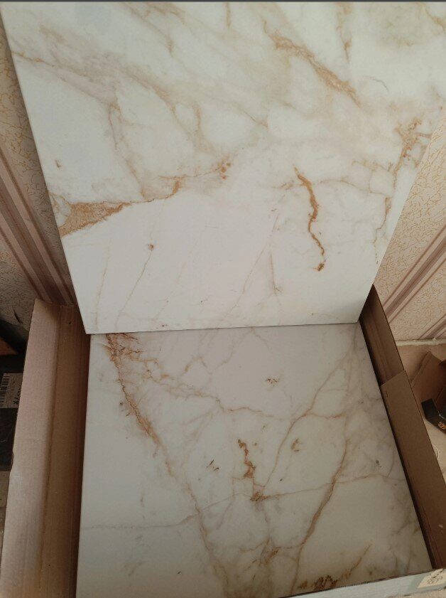Цвет: белый с золотистым, под мрамор. Может иметь несколько графических лиц (рисунков).