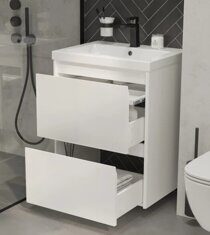Размер: 60х45х76,3 см. Цвет: белый. Два выжвижных ящика, выдвижной органайзер. В комплекте раковина Como 60