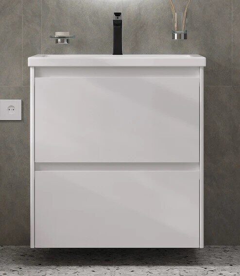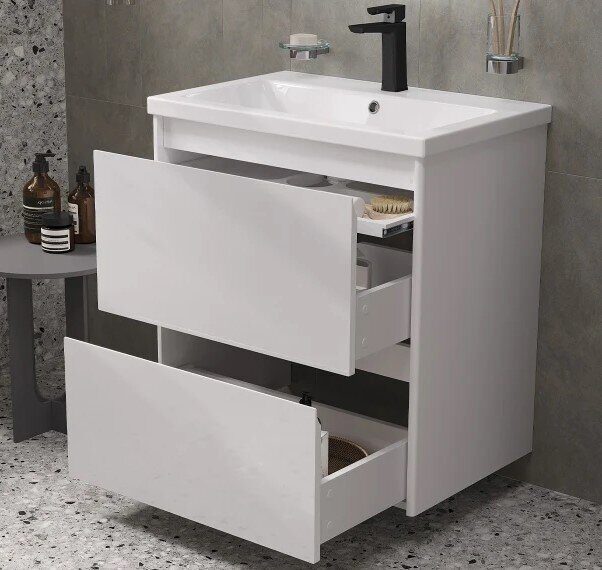 Капри 60 см тумба подвесная белая для ванной комнаты с раковиной Миранда 60 Aquaton