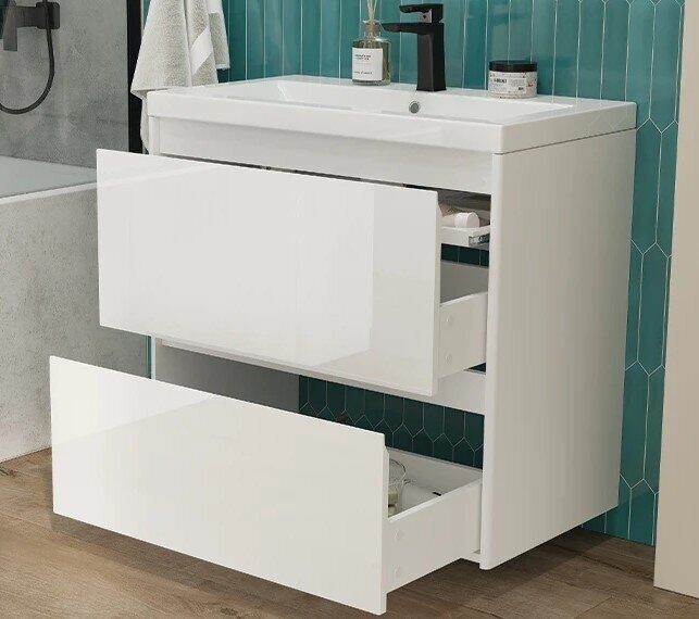 Размер: 80х45х763 см. Цвет: белый. Два выдвижных ящика, выдвижной органайзер. В комплекте раковина Como 80