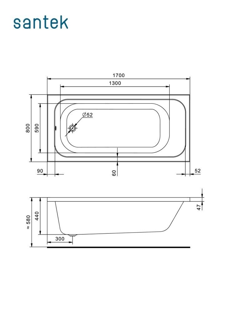 Главная Каталог магазина Сантехника Ванны Ламма 170х80см ванна акриловая Santek