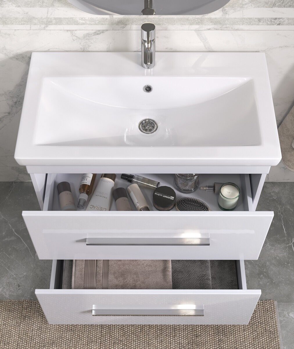 VigoLand 800-0-2 тумба подвесная белая для ванной комнаты с умывальником Como 80