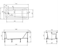 Размер: 150х70см. Глубина: 44,5см. Объем 180л. Материал: 100% литьевой акрил