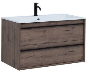 Lino 80 тумба дуб веллингтон для ванной комнаты с раковиной-столешницей Flat 80 Aquanet