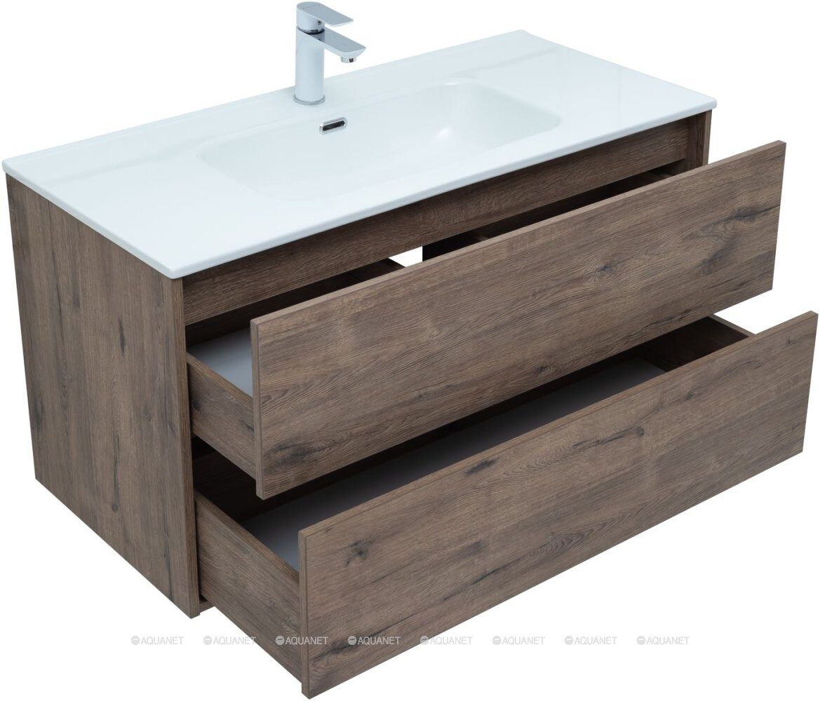 Размер тумбы: 100х45,5х52 см. Цвет: дуб веллингтон. Комплект: 2 ящика, раковина-столешница Flat 100