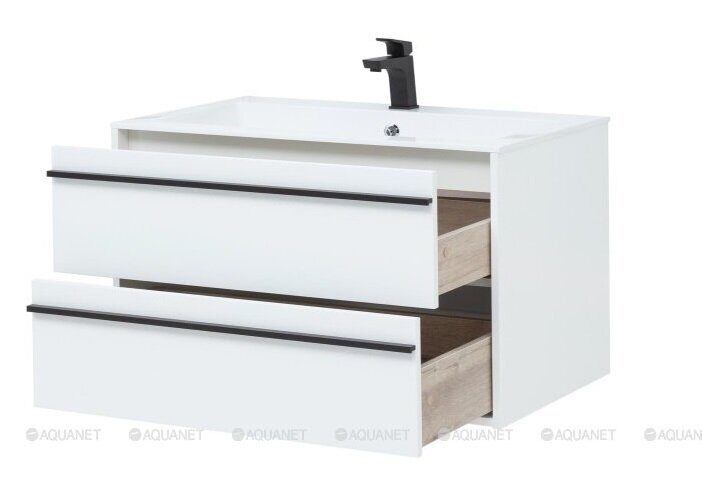 Арт 75 тумба белая матовая для ванной комнаты с раковиной-столешницей Арт 75 Aquanet