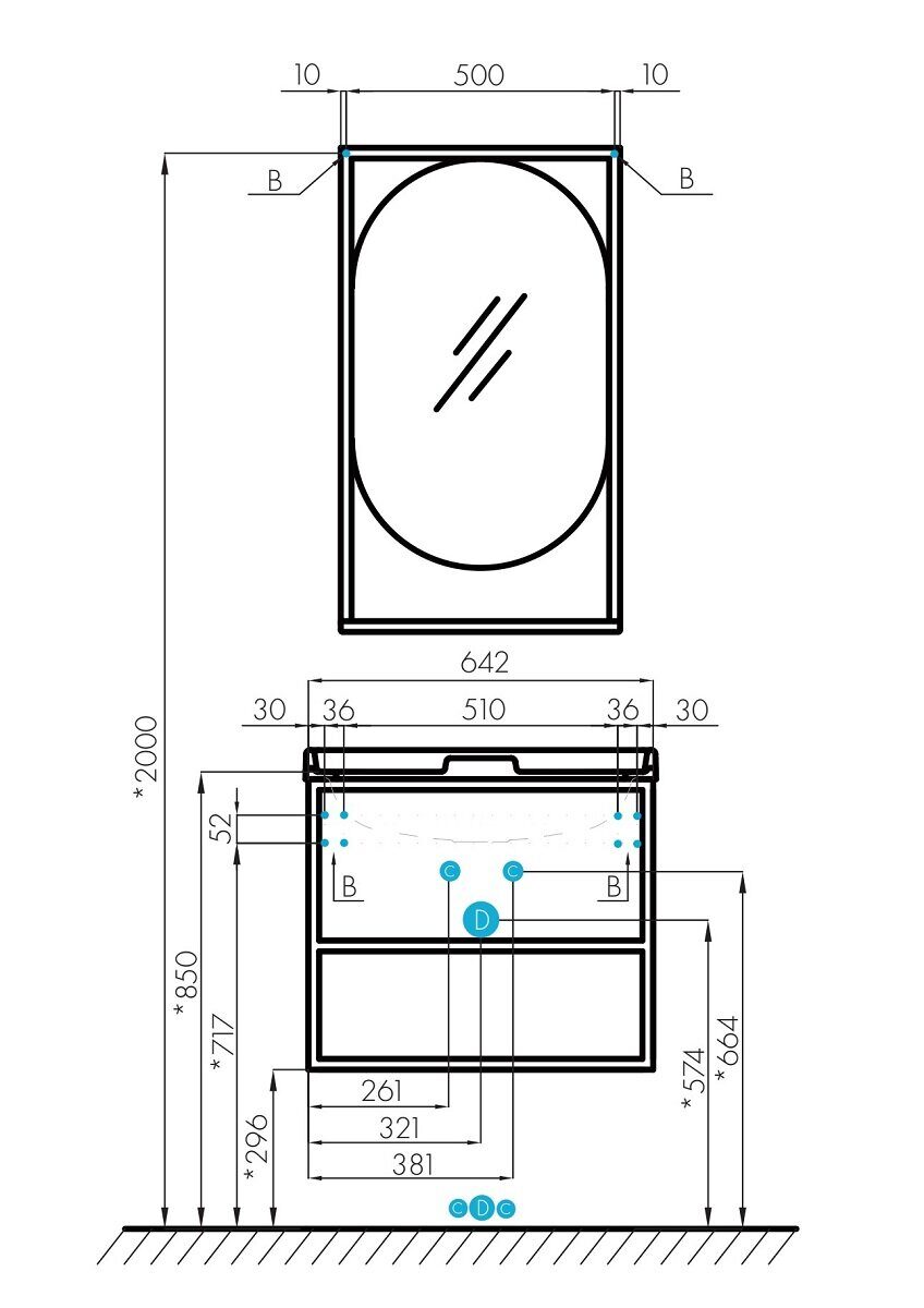 Комплект поставки: регулируемый навес - 2 шт., Ручка - 1 шт., Ящик (направляющие с интегрированной системой плавного закрывания) -1 шт., Полотенцедержатель - 1 шт. Столешница предустановлена