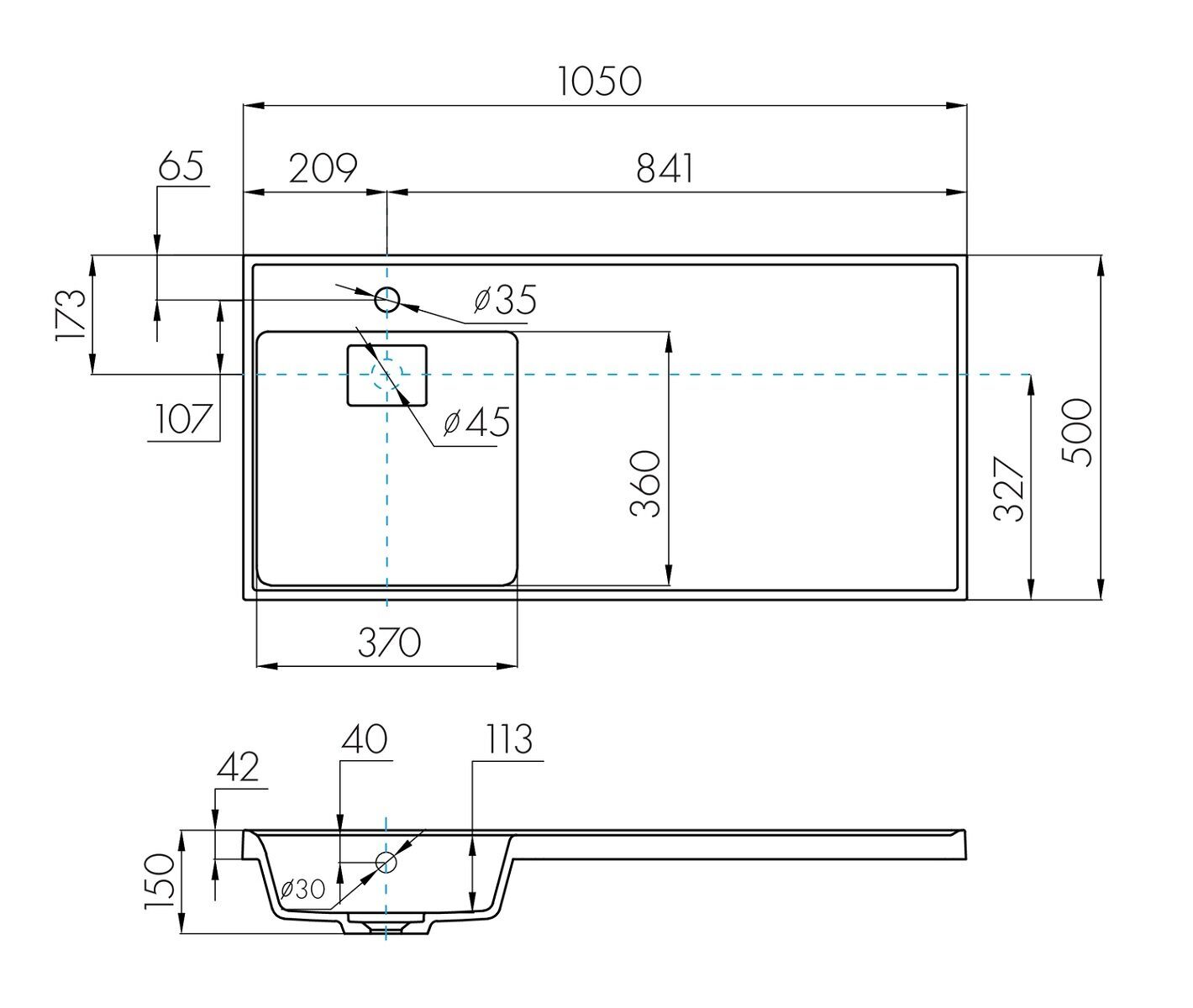 Размеры:  1050х500х150мм