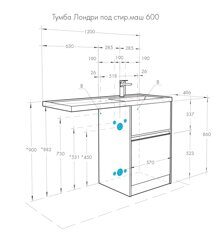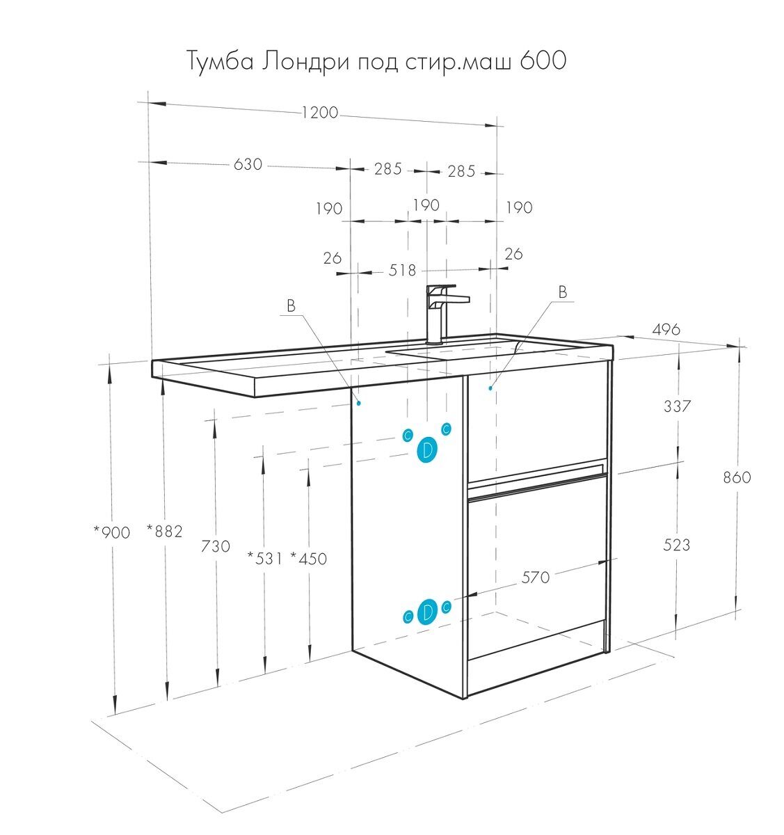 Лондри 60 см тумба под раковину над стиральной машиной с раковиной Лондри 120 правая Aquaton