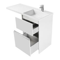Комплект поставки: регулируемый навес - 2 шт., Выдвижной ящик - 2 шт., Направляющие push-to-open - 1 шт., Ручка - 1 шт., Фасад ящика - 2 шт., Направляющие с интегрированной системой плавного закрывания - 1 компл. Раковина Лондри 120 правая