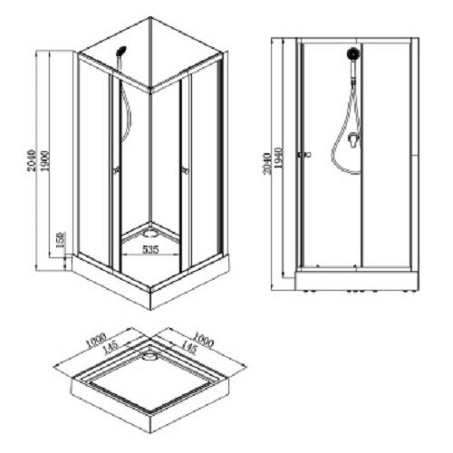 AzarioLoranto CS-21801-100, 100*100*205 душевая кабина, поддон 15см, прозрачное стекло, без крыши