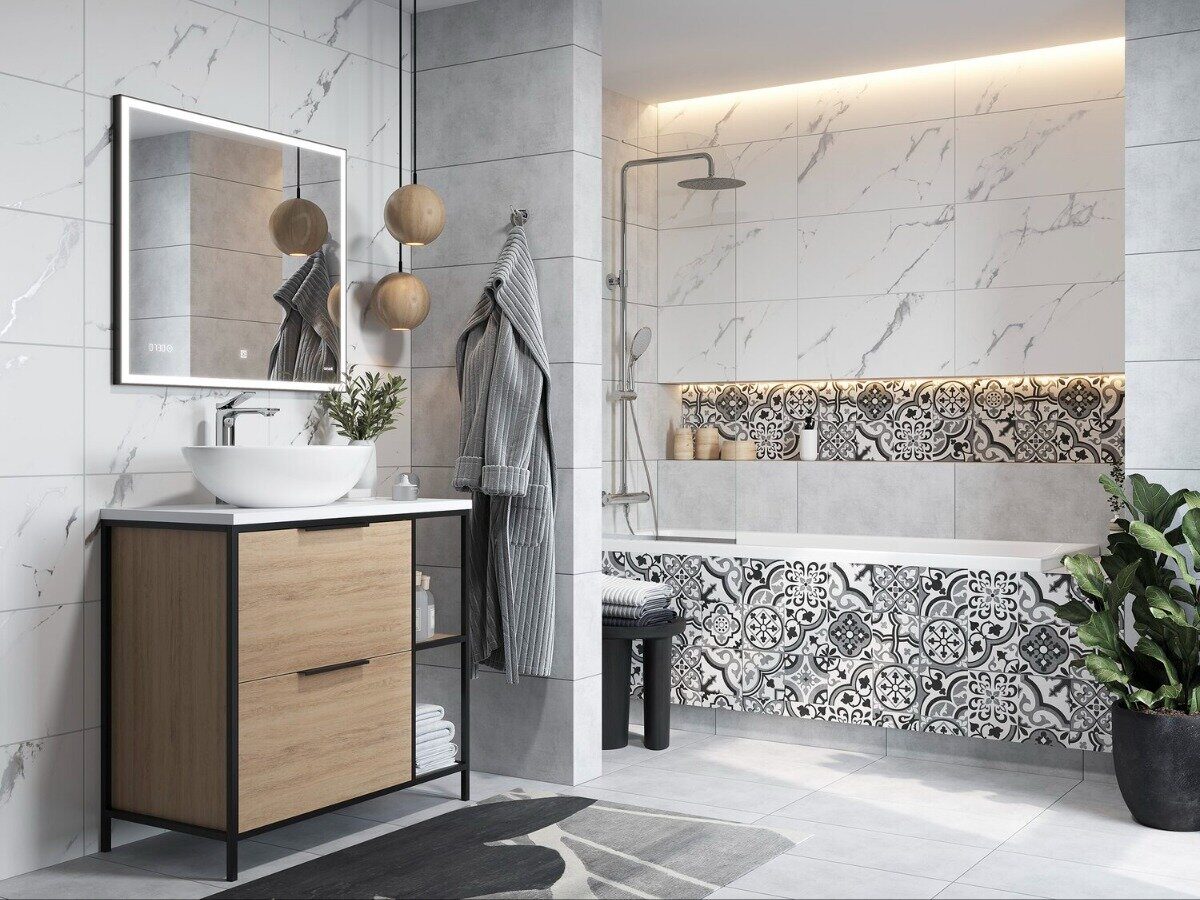 У нас можно подобрать всю необходимую сантехнику, мебель для ванных комнат, напольные покрытия, межкомнатные двери...