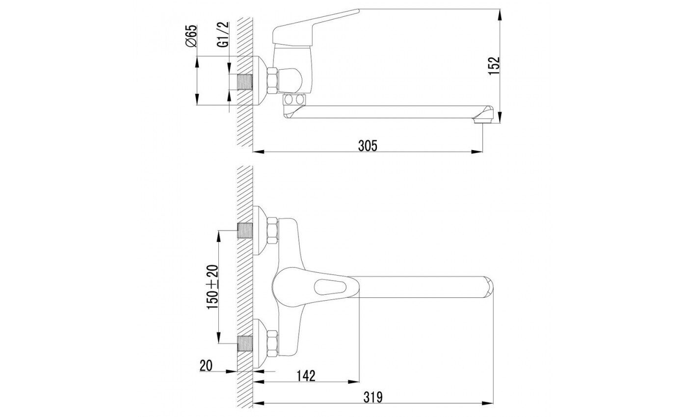 Luna LM4134C смеситель для ванны и душа с коротким фиксированным изливом, хром Lemark