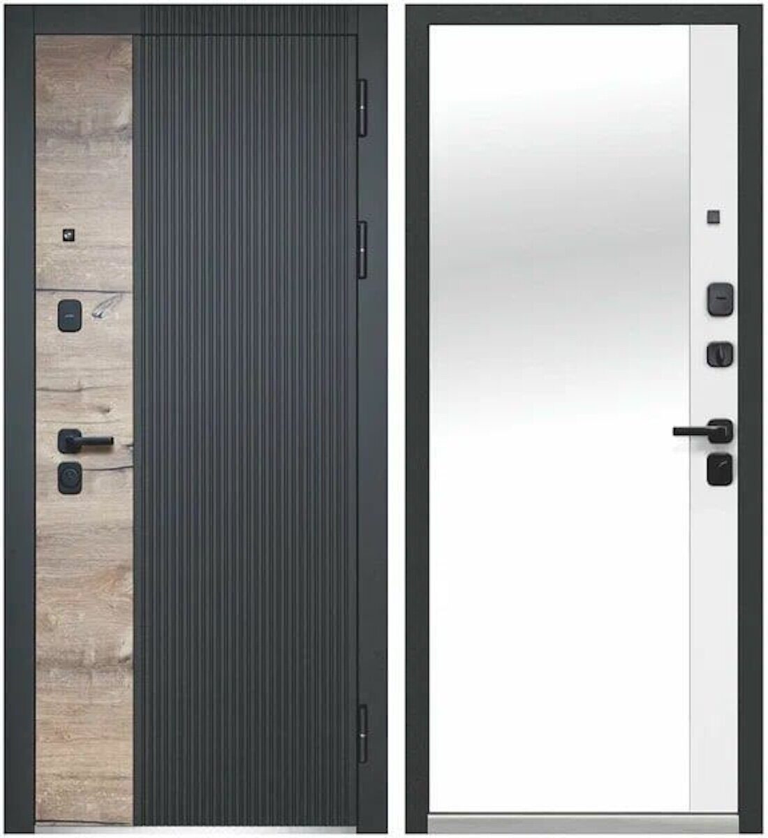 FerroniLuxor 2МДФ Дуб Вертикаль зеркало дверь входная Канадский дуб пацифик, Сатин черный, Эмалит белый встроенное зеркало в пол
