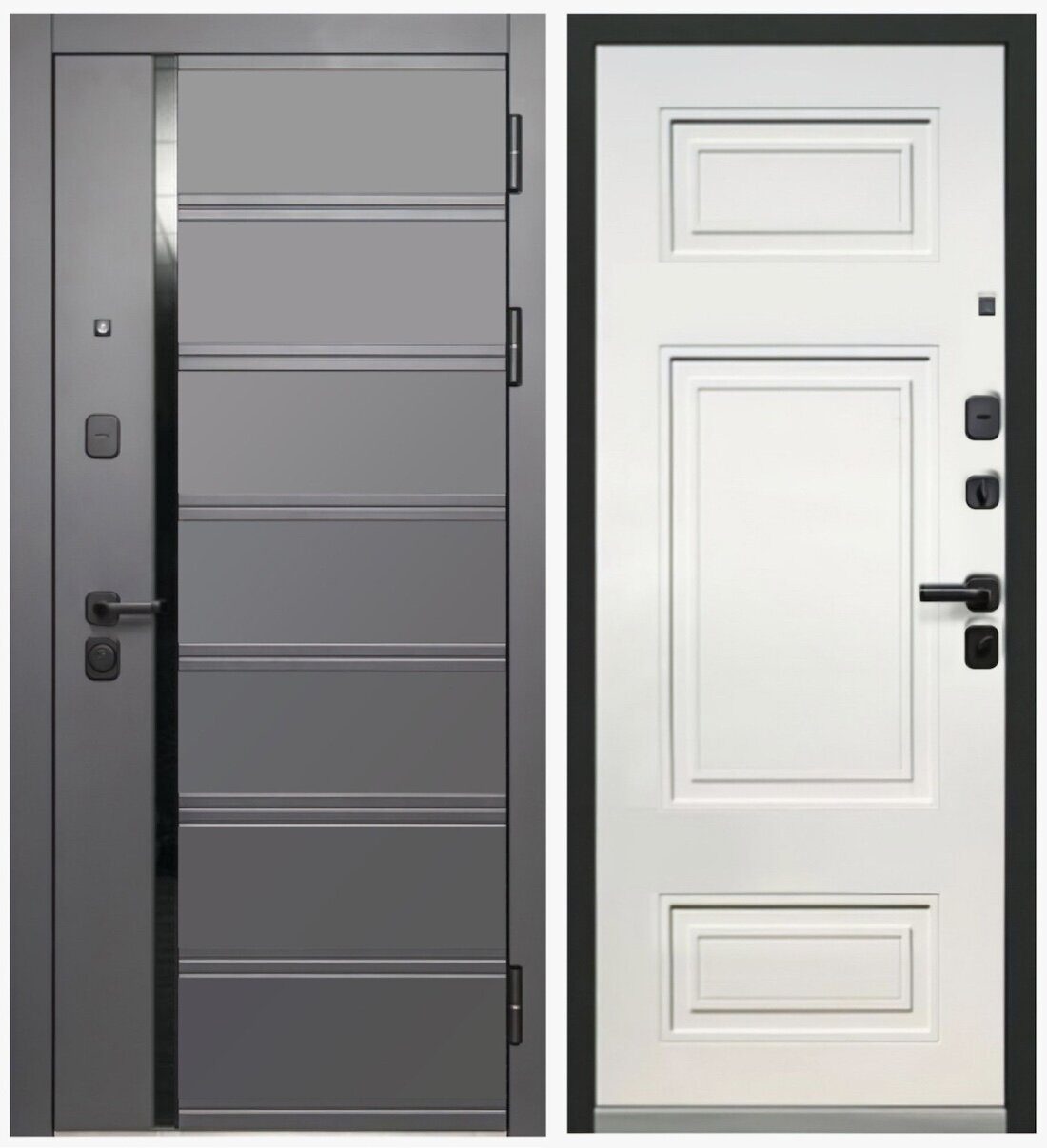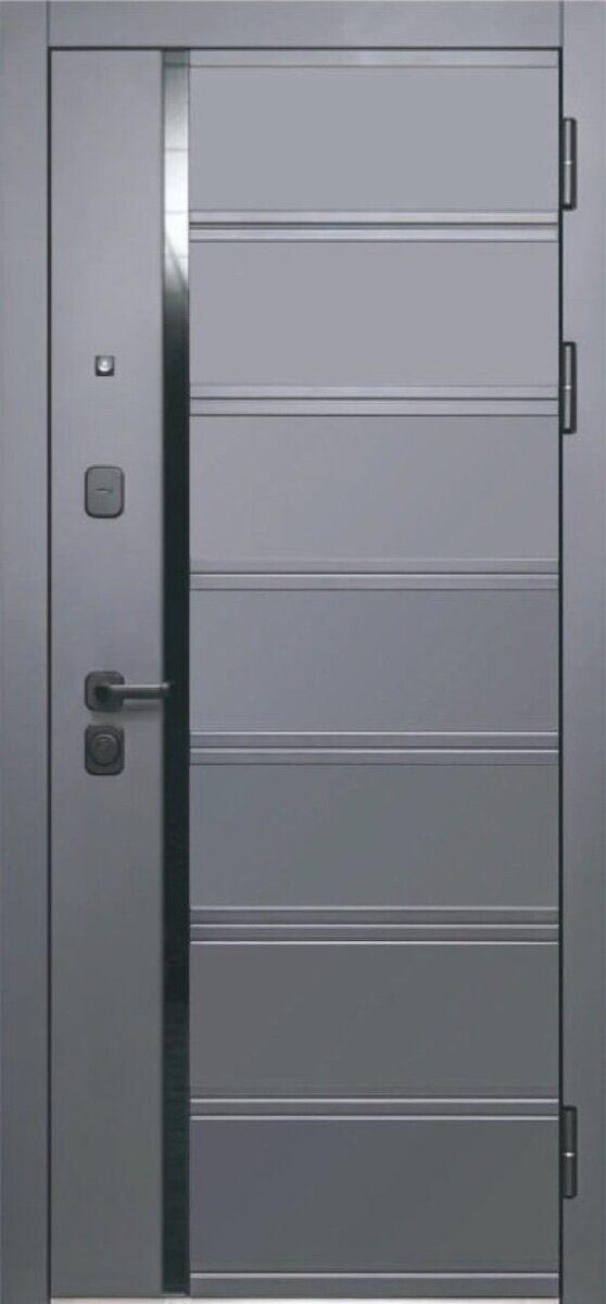 Внешнее покрытие: фрезерованная МДФ-панель 12 мм, вставка черный лакобель, цвет пленки «Сатин графит»