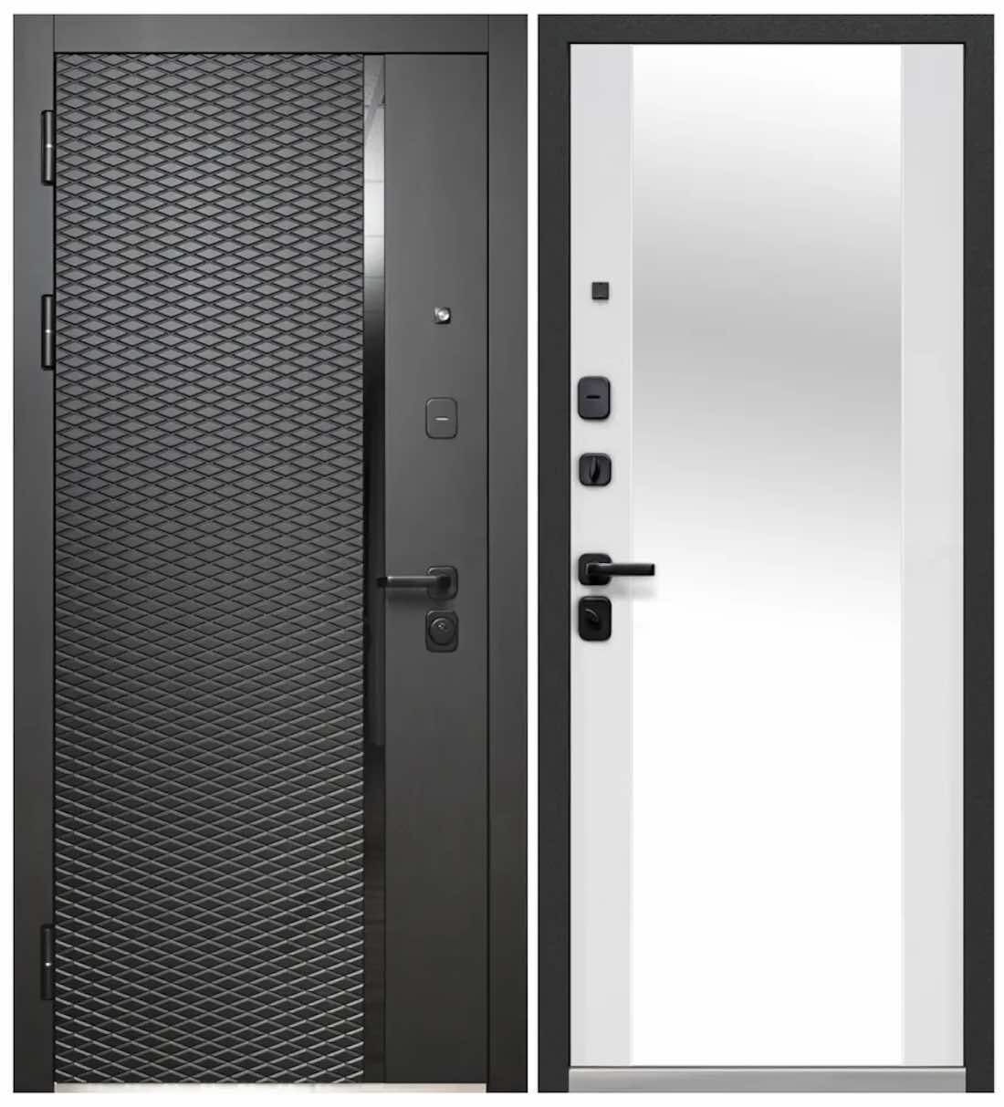 FerroniLuxor 2МДФ Ромбы Вертикаль зеркало дверь входная Антрацит софт, Эмалит белый встроенное зеркало в пол