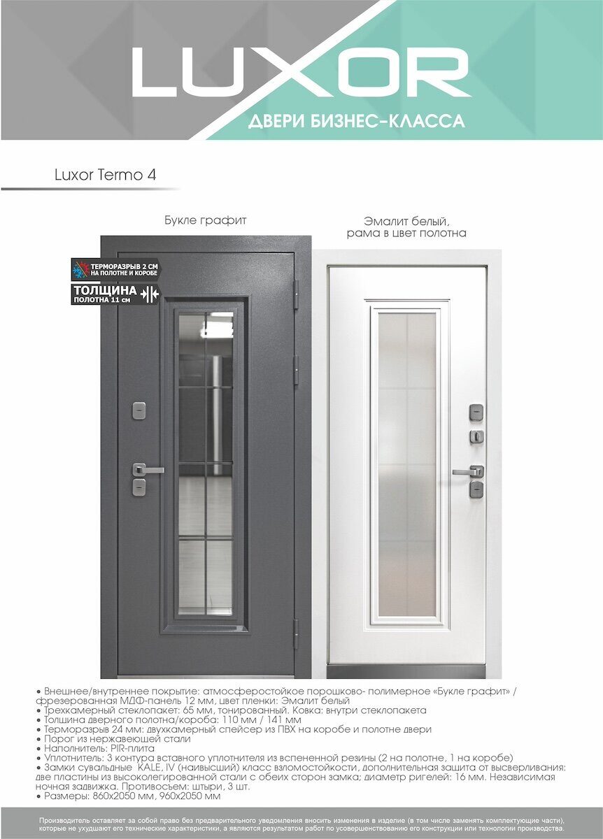 Luxor Termo 4 дверь входная стальная Букле графит, Эмалит белый