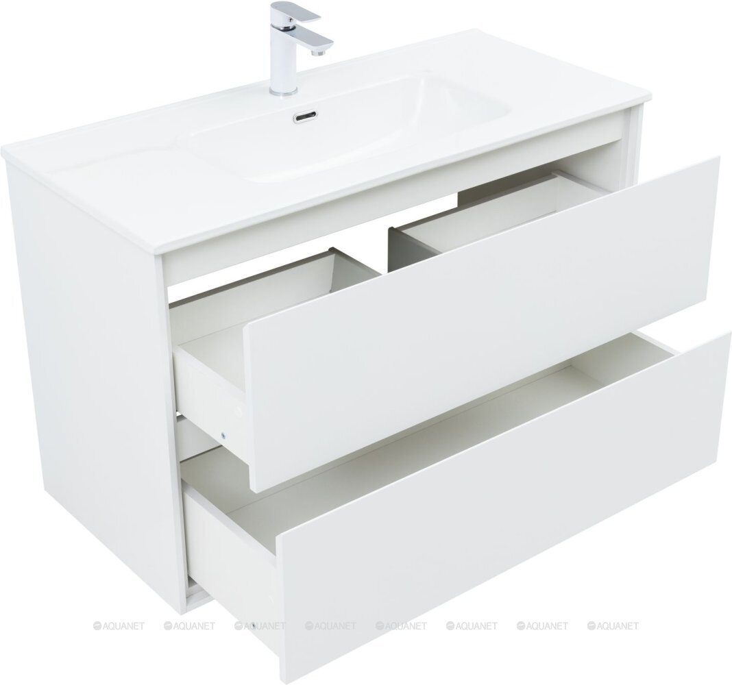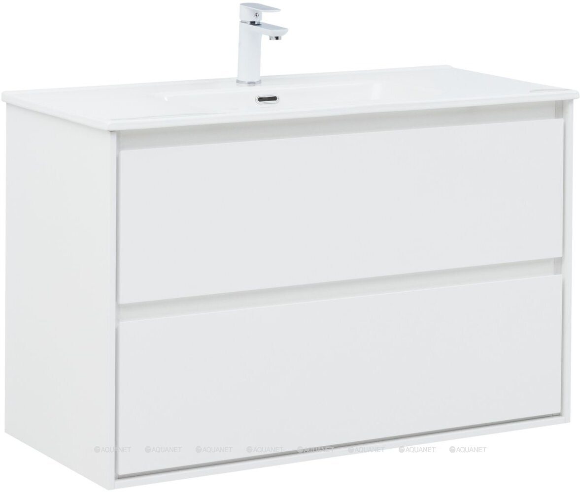 Ирис new 90 тумба белая подвесная для ванной комнаты 2 ящика с раковиной Ирис 905*465*205 мм Aquanet