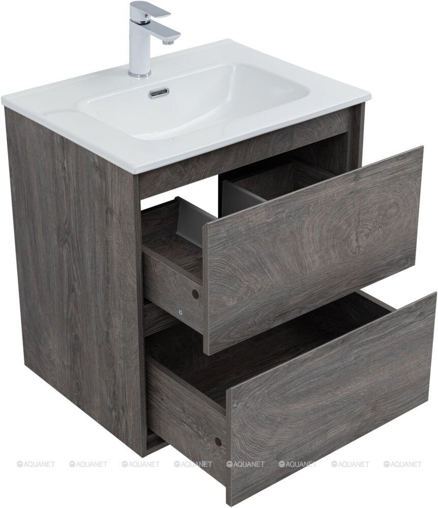 Милан 60 тумба дуб рошелье для ванной комнаты с раковиной-столешницей Flat 60 Aquanet