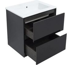 Размер тумбы: 64х46,3х65,7 см. Цвет: черный глянец. Комплект: 2 ящика, раковина-столешница Оскар 65