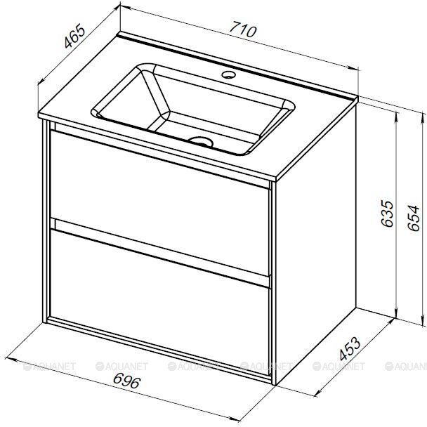 Размер: 69,6х45,3х63,5 см. Цвет: дуб рошелье. Комплект: 2 ящика, накладная керамическая раковина Flash 710*465*195