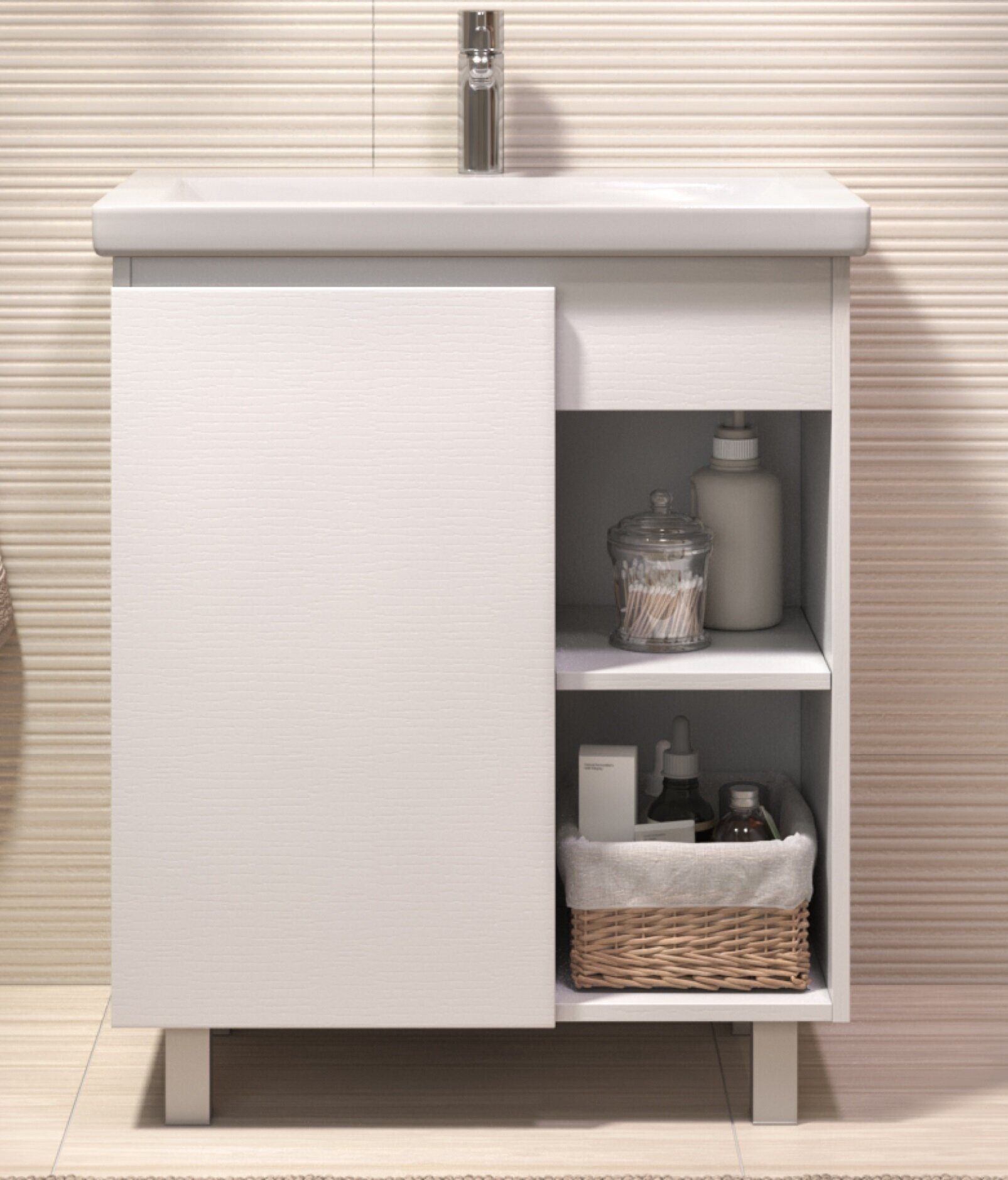 VigoMilos 700-1-0 белая тумба для ванной комнаты с умывальником Como 70см