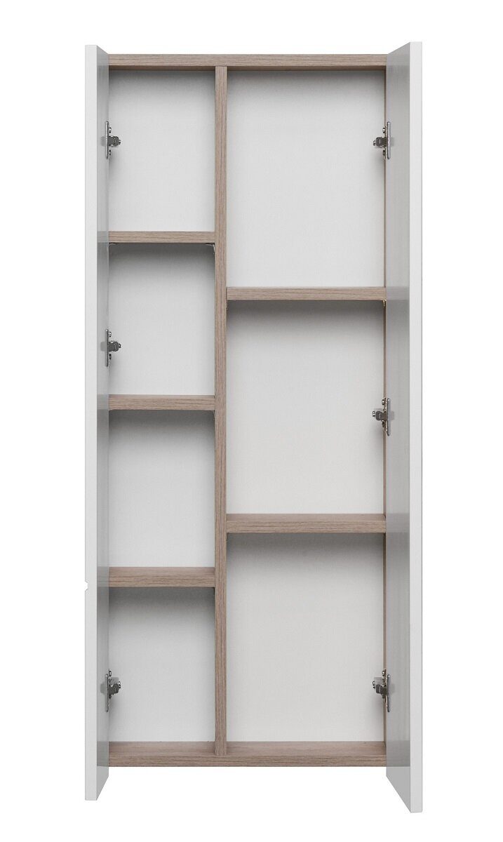 Размер: 85х55х13 см. Цвет: белый. Комплект: Полка стеклянная - 2 шт., Регулируемые навес - 2 шт., Фасад - 1 шт. (петли с интегрированной системой плавного закрывания)