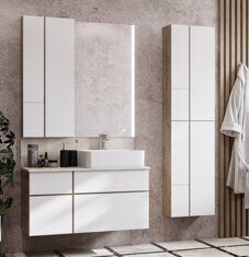 Мишель 43 см шкаф-пенал подвесной белый/дуб эндгрейн для ванной комнаты Aquaton