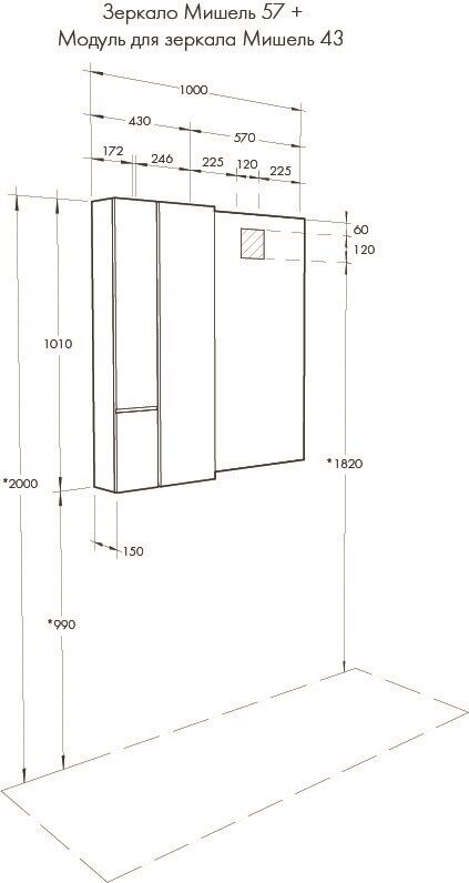 Материал: влагостойкая ЛДСП, зеркало, алюминий