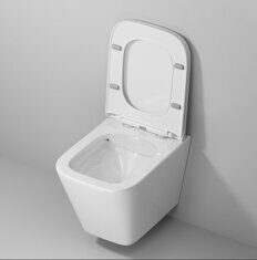 Размеры: 52х30,6х36,5 см. Безободковый. Цвет: белый. Сидение тонкое, быстросъемное с микролифтом в комплекте.