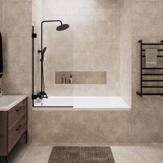 У нас можно подобрать всю необходимую сантехнику, мебель для ванных комнат, напольные покрытия, межкомнатные двери...