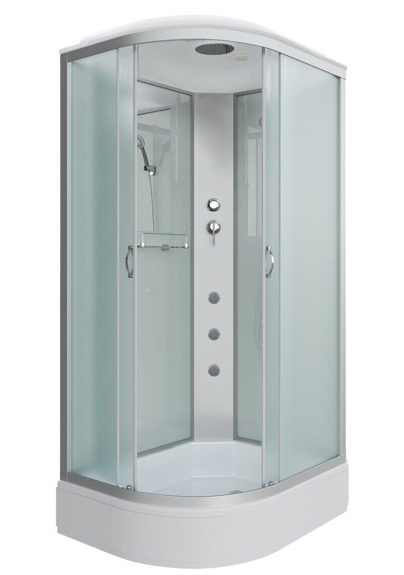 Комплектация: зеркало, полочка, вентиляция, ручной душ, тропический (верхний) душ, гидромассаж