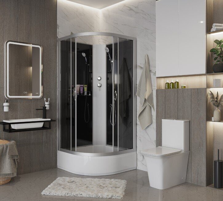 Комплектация: зеркало, полочка, ручной душ
