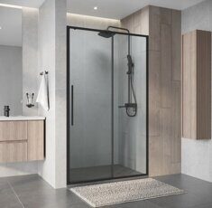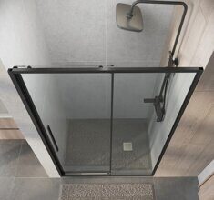 Размеры: 120х195см. Закаленное стекло прозрачное, 6мм.  Раздвижная дверь. Профиль графи матовый