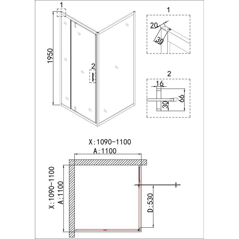 Размеры: 110х110х195см. Закаленное стекло прозрачное, 6мм. Квадратная форма. Распашная дверь.
